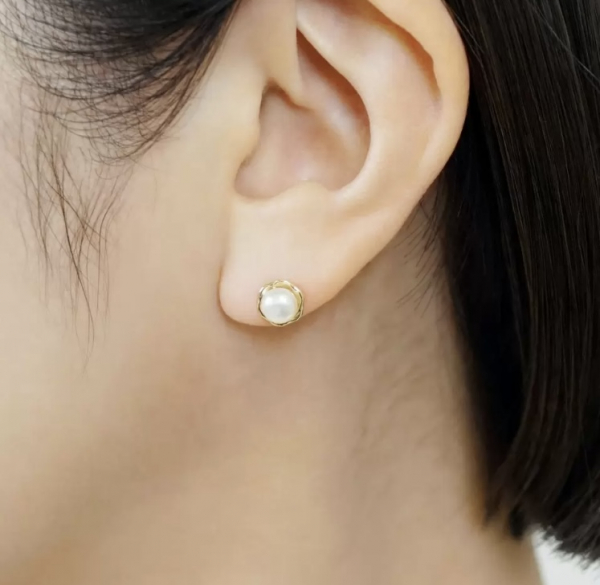 ゴールドラインが目を惹くパールピアス❣️
