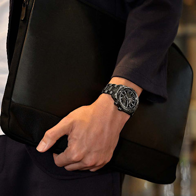 多彩な黒の文字板とシルバーのアクセント。
