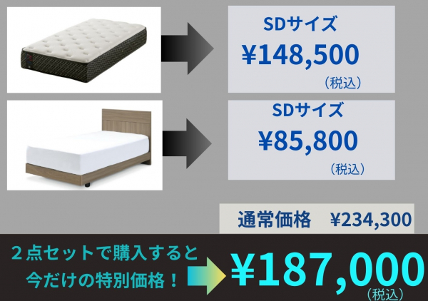 フレームとマットレスを合わせて